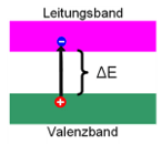 • Leitungsband – das nächsthöhere Band, das bei genügend Energie (z. B. durch Temperatur, Licht oder Dotierung) freier Elektronen enthält.
