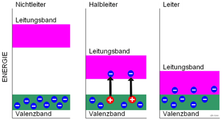 Bandmodell von Isolatoren, Halbleiter und Leitern4