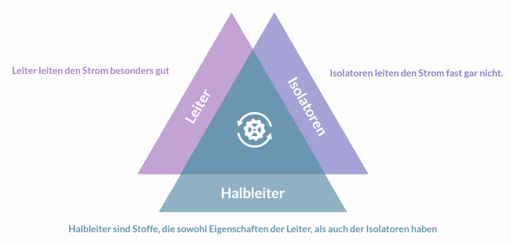📊 Vergleich: Leiter – Halbleiter – Isolator