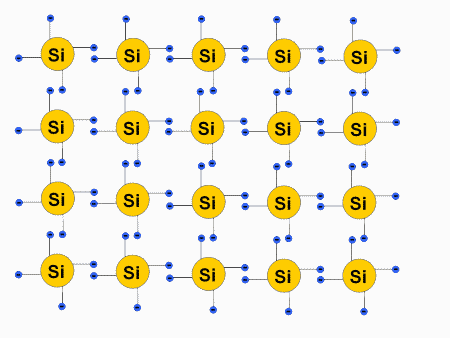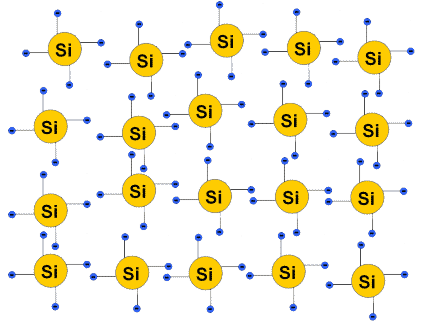• Jedes Siliciumatom bildet vier kovalente Bindungen mit den Nachbaratomen.
